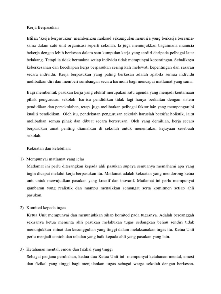 Kelebihan Dan Kekuatan Kerja Berpasukan Pdf